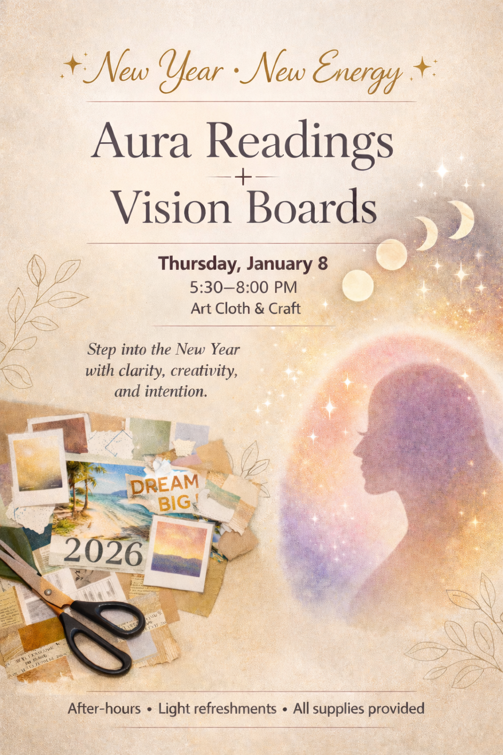 RESERVE YOUR SPOT NOWAura Readings + Vision Boards at Art Cloth & Craft – Thursday, January 22, from 5:30–8:00 PM