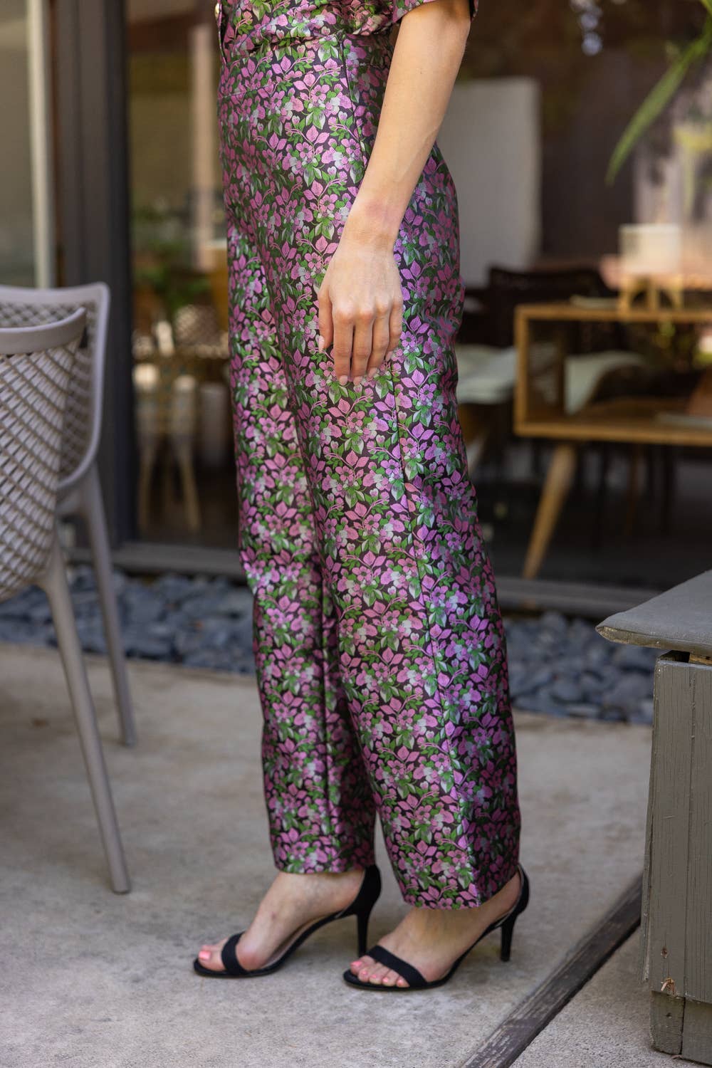 The floral jacquard straight leg pant is incredibly versatile. You can make these go from season to season just by pairing them with different tops, from white blouses to creamy sweaters these chic pants will help you stand out in all the best ways. The have a lovely silhouette with a flat mid waist rise and invisible side zipper.