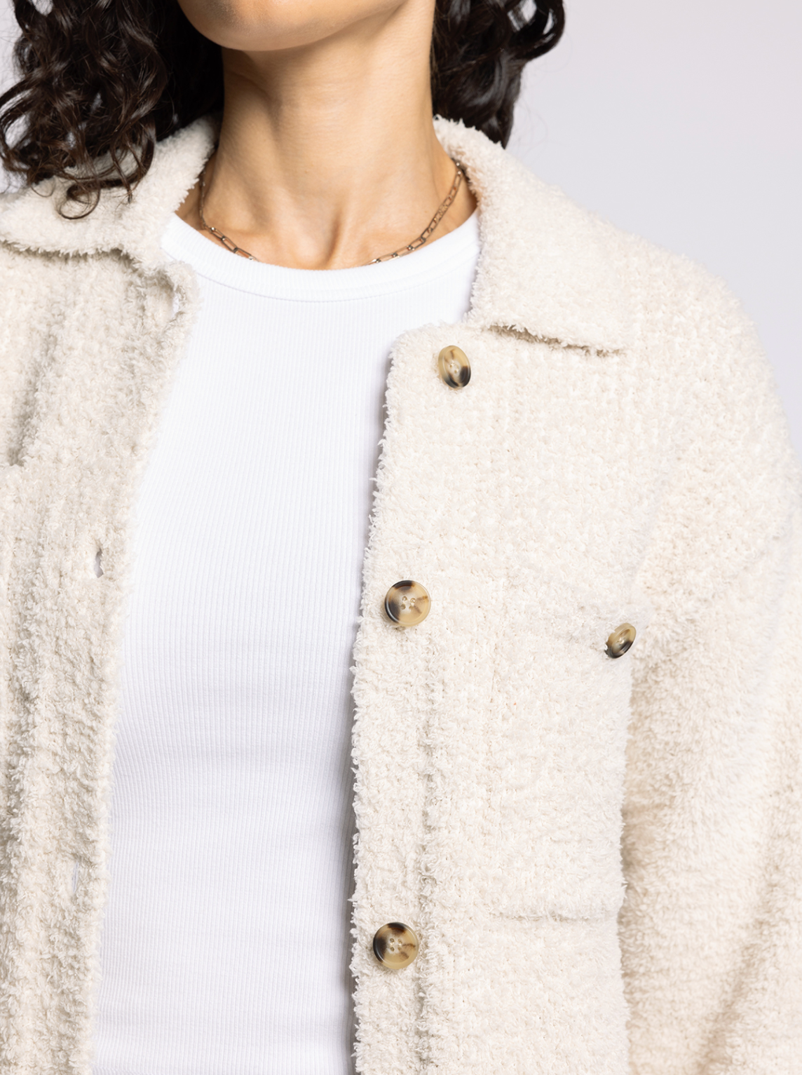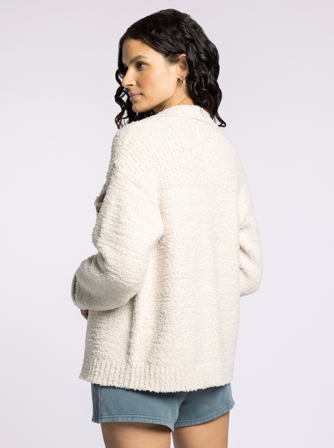 The best of both worlds, this so-soft sweater jacket is featured in a plush fabrication with a button front closure and dual patch pockets.