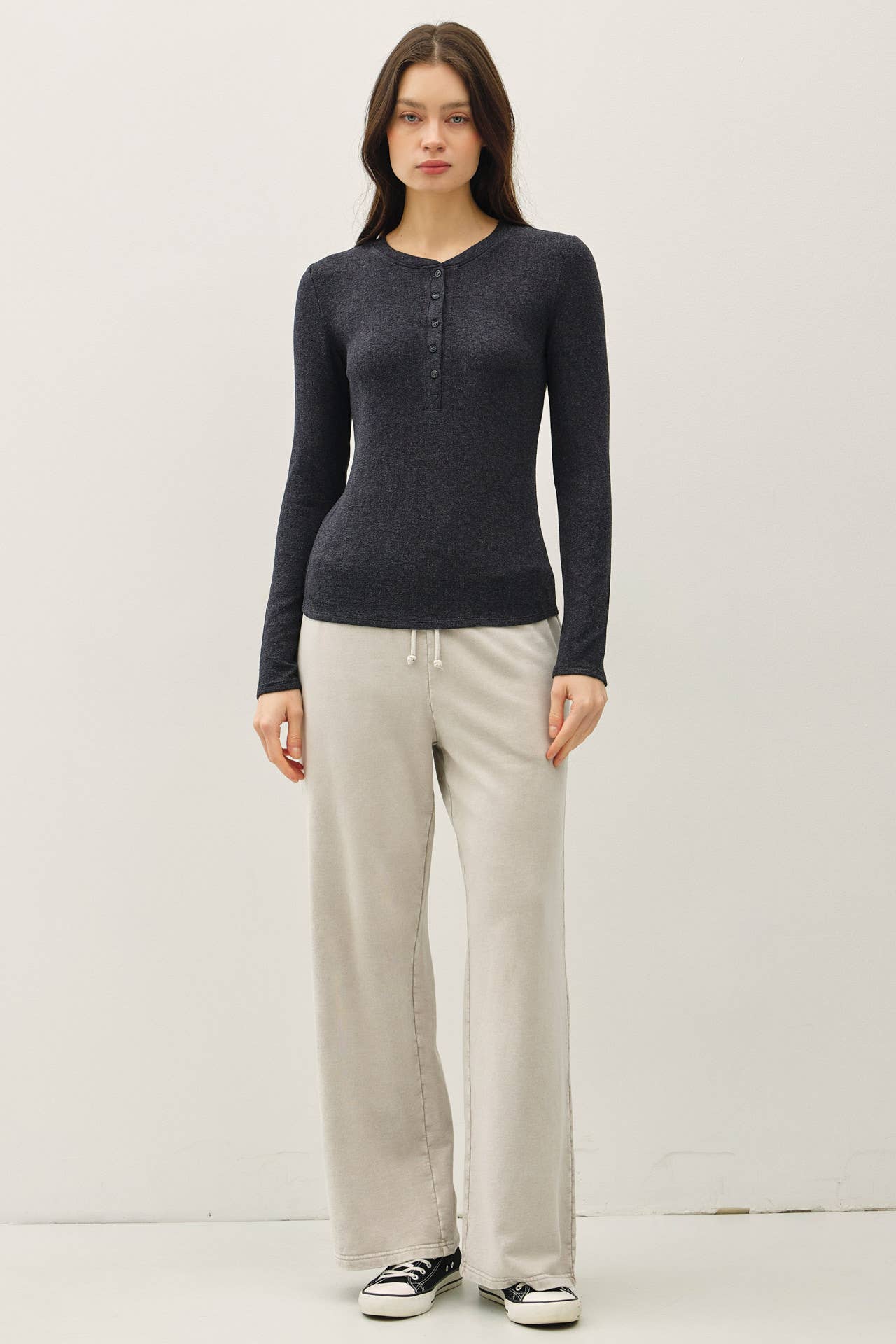 This is a great basic henley with a slim fit. Thin for layering, ultra soft, with long sleeves