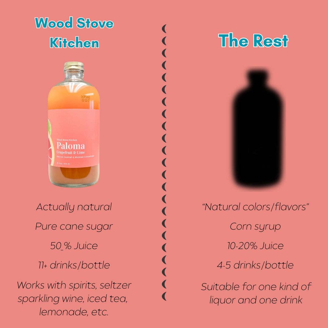 Bright, tart grapefruit combines with fresh lime to make an incredible mixer with a bright pink color that just pops on the shelves. This mixer makes it quick and easy to make one of the most popular summer-time cocktails, the Paloma.
