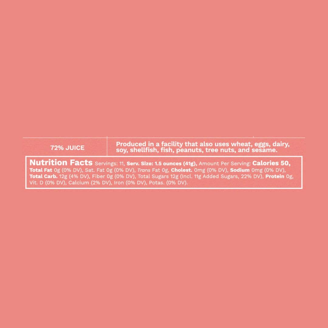 Ingredients: Water, Cane Sugar, Grapefruit Juice Concentrate, Lime Juice Concentrate, Agave. Shelf life: 24 months.