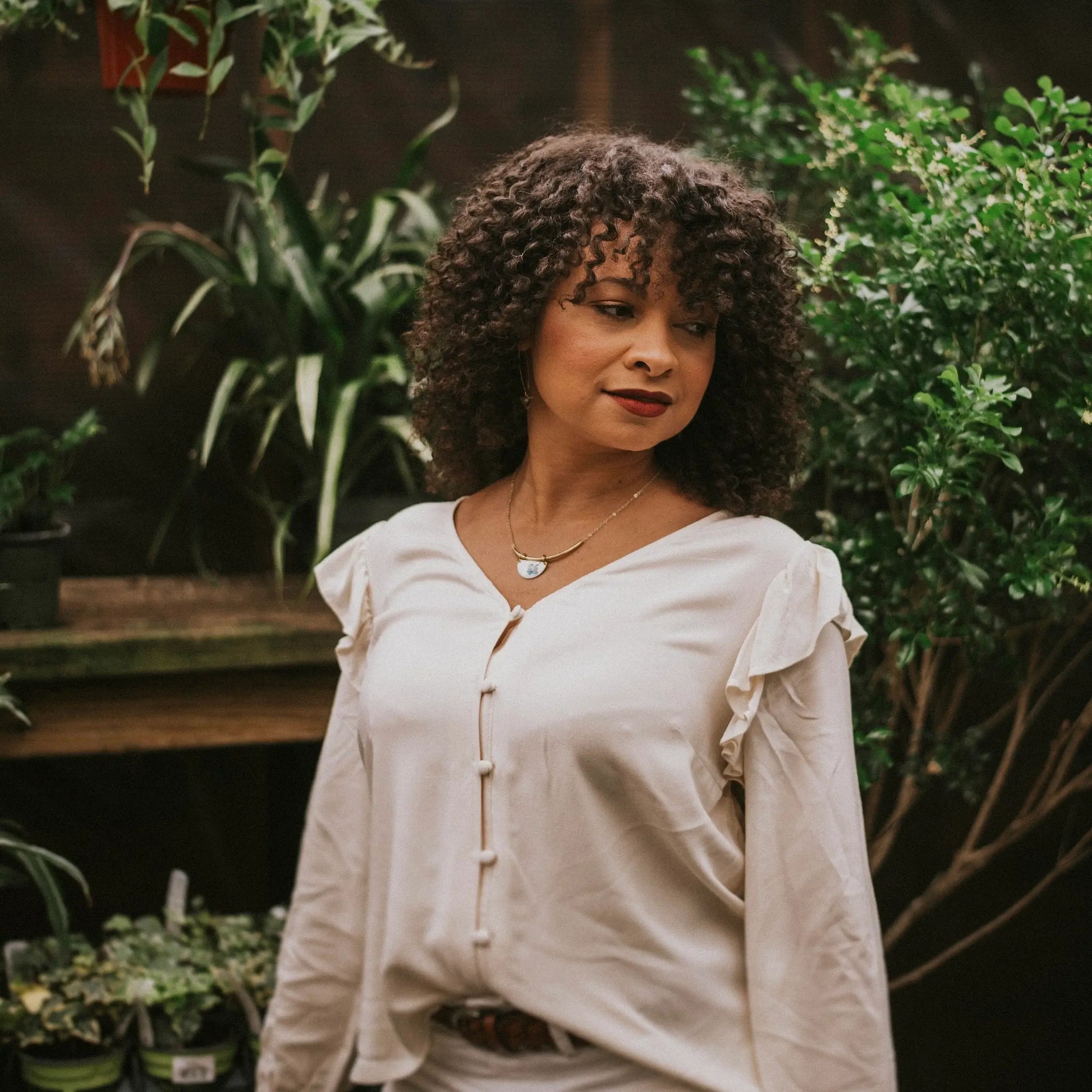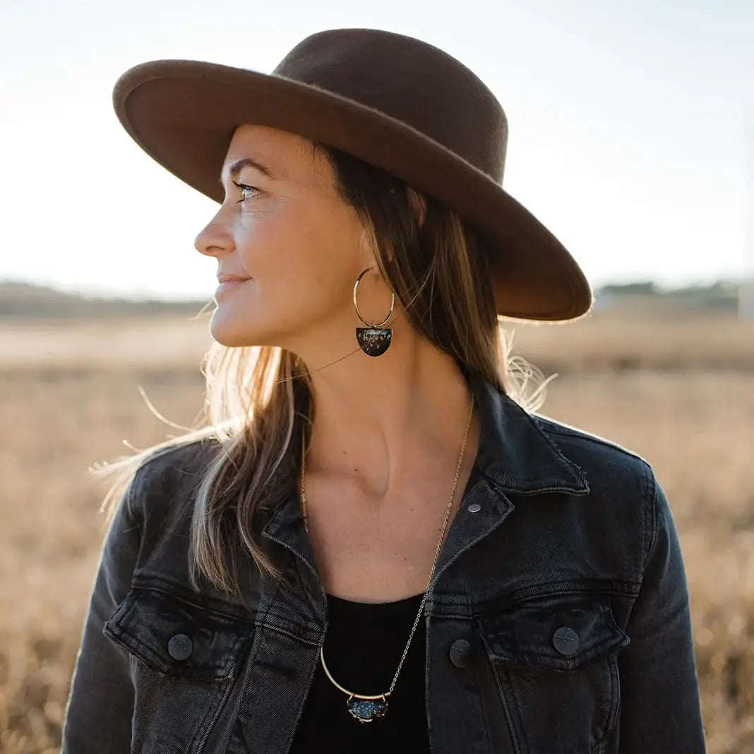 The Radiance Necklace is the perfect balance of modern and minimal. Queen Anne’s Lace is a symbol of sanctuary. Bar and pendant are solid brass.