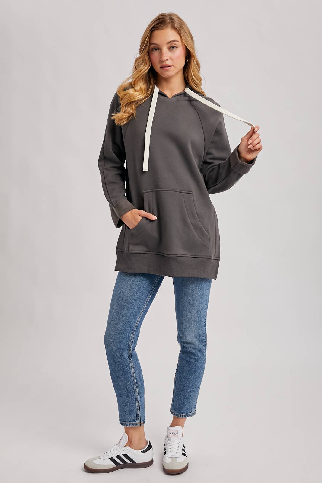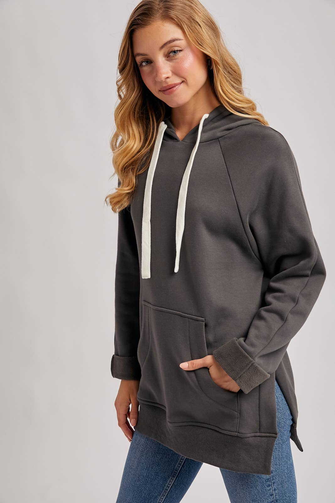 Side Slit Tunic Hooded Sweatshirt - Ash
